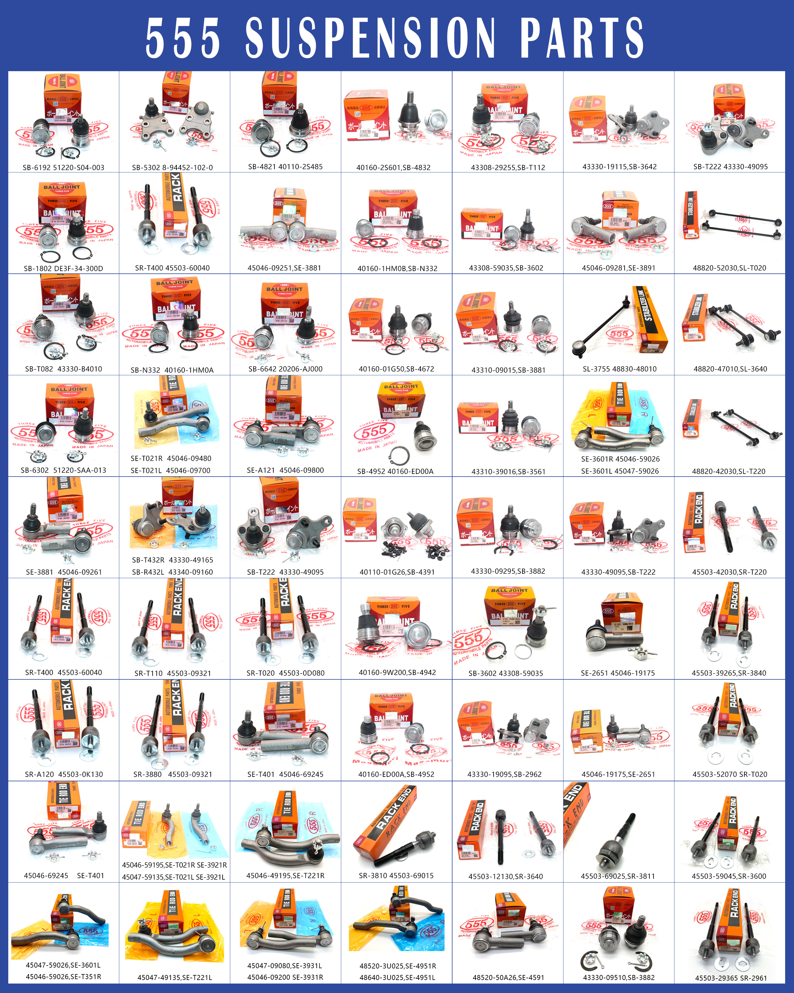 Q1: บริษัทของคุณมีประสบการณ์ในวงการอะไหล่รถยนต์มานานแค่ไหน?A1:บริษัทของเราตั้งขึ้นตั้งแต่ปี 2008 มีประสบการณ์มากกว่า 15 ปีในธุรกิจอะไหล่รถยนต์ Q2: บริษัทของคุณจําหน่ายสินค้าอะไร?A2: ผลิตภัณฑ์ของเราเป็นชิ้นส่วนรถยนต์แท้ OEM และ aftermarket สําหรับรถยนต์ญี่ปุ่น, รถเกาหลี และรถยนต์เยอรมันQ3: คุณส่งออกไปยังประเทศไหน?A3:อเมริกาเหนือ, ยุโรปตะวันออก, อเมริกาใต้, ยุโรปตะวันตก, ตะวันออกกลาง, แอฟริกา, เอเชียตะวันออกเฉียงใต้ เป็นต้นQ4: บริษัทของคุณมีแบรนด์ของตัวเองไหม?A4: บริษัทของเรามีแบรนด์ของตัวเองคือ REXWELLQ5: MOQ ของแต่ละรายการคืออะไร?A5: มันขึ้นอยู่กับรุ่น ถ้าเรามีสต็อคสําหรับรายการ เราสามารถยอมรับปริมาณตามคําขอของลูกค้า หากไม่รายการที่แตกต่างกันอาจมี MOQ ต่างกันQ6: แล้วเวลาจัดส่งล่ะ?A6:โดยทั่วไป 3-7 วันหลังจากการยืนยันคําสั่งขึ้นอยู่กับสต๊อกQ7: คุณให้การรับประกันสินค้าของคุณ?A7: โดยพื้นฐานแล้ว เรามีการรับประกันคุณภาพ 1 ปี สําหรับอะไหล่แบรนด์ REXWELLQ8: คุณมีใบรับรองหรือไม่?A8: ใช่ เช่น ISO: 9001, SGS เป็นต้นQ9: คุณสามารถพัฒนาผลิตภัณฑ์ใหม่ตามคําขอของลูกค้า?A9: เราต้อนรับลูกค้าให้ตัวอย่างเพื่อพัฒนาสินค้าที่พวกเขาต้องการ